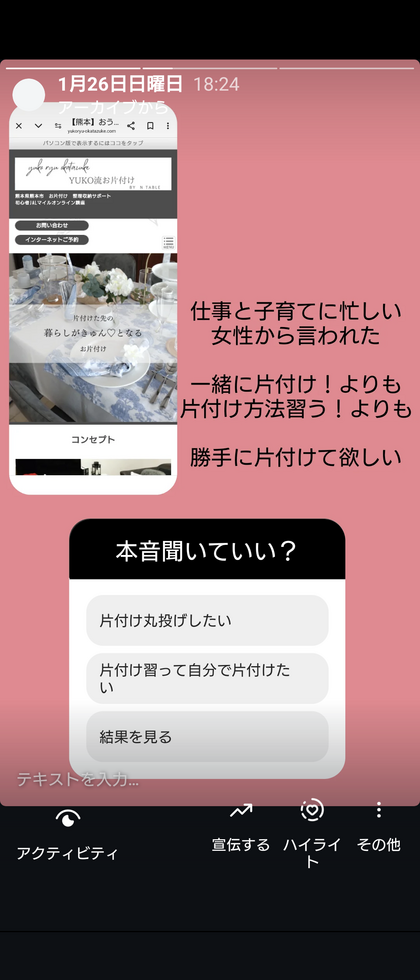 この結果を、仲間のお片付けアドバイザーと検証してみたのですが、私のInstagramをフォローして下さってる方はプロの整理収納アドバイザーの方が多く、またそうでない方も、元々片付けに興味があり、本やSNSでかなり勉強している方が多いからだということがわかりました