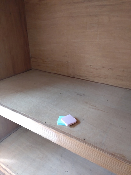 (この物入れの収納はその後少し変更しました)