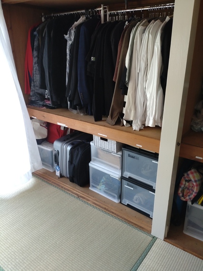 今回、この押し入れにはご主人の服を収納します。洋服の整理はご主人自身でして頂きます!