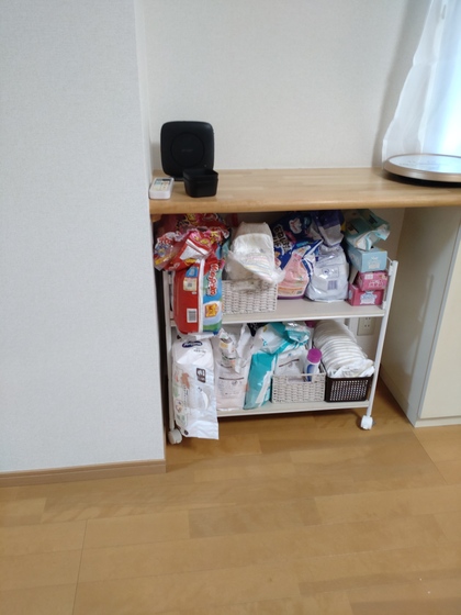 壁の向こうがシンクなので、哺乳瓶も洗って乾かす場所もあり、使うときはすぐに持ってきてこれます。