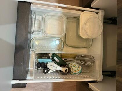 あまりたくさんの物はないのですが、キッチンツールが取り出しにくかったり、保冷バックが放り込んであったりと