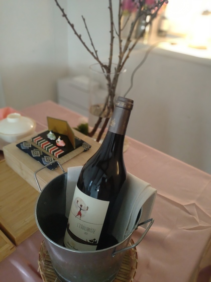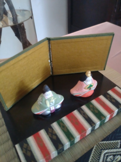 我が家の小さな小さなお雛様もテーブルに乗せました