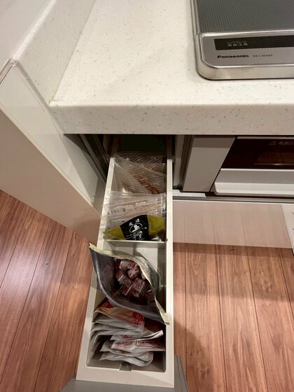 システムキッチンの中を見るともっと使いやすい収納に出来そうでした。