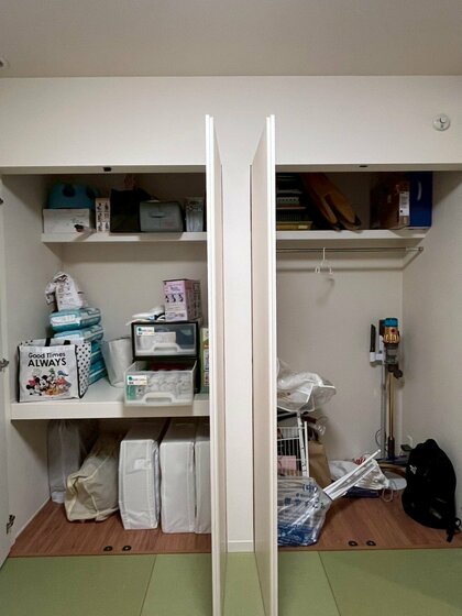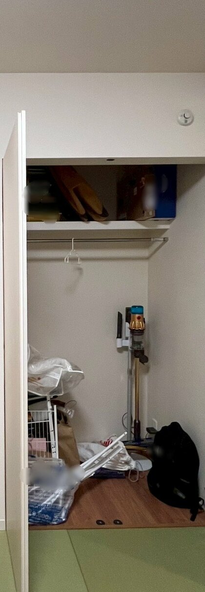 この収納には様のお仕事道具とお子様のおもちゃと掃除機のみ収納しました。