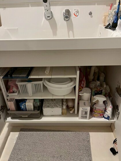 洗面台の中も高さを変えて収納し直しました。