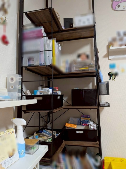 ・保育園の書類が直ぐ行方不明になるとのことでしたので本棚の一角に書類ステーションを設けさせていただきました。