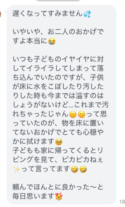 フルタイムで毎日お忙しく、さらにもうすぐ可愛い赤ちゃん誕生とのことで、なかなか片付けまで手が回っていない状況のようでした。