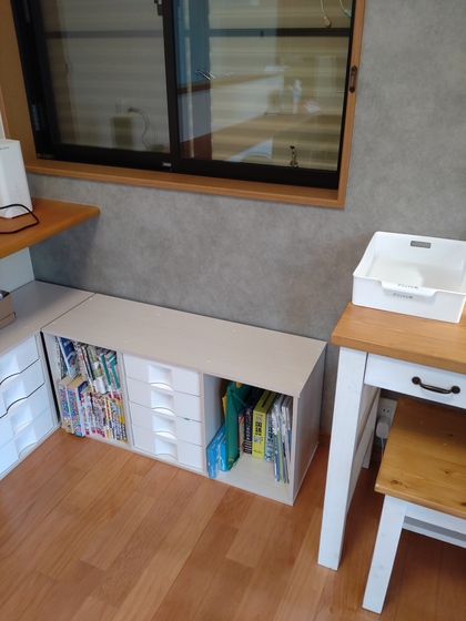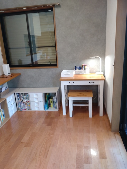 リビングルームにお子様のコーナーを設置しましたが、お子さんが自主的にお片付け出来るまではなるべく一緒に片付けてあげる、声掛けを継続的にする、褒めるなど親も根気が必要です。