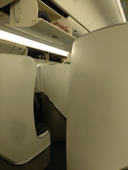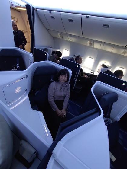ビジネスクラスは窓際に1席 中央に2席 こちらは行きの旧シートになります