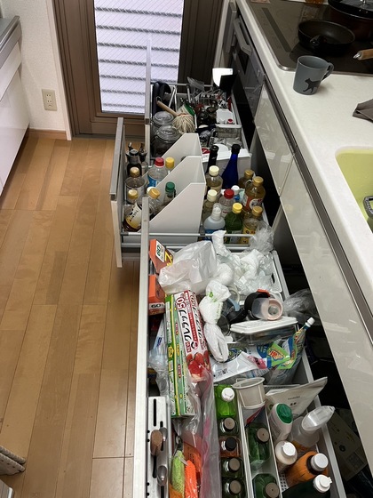 収納グッズを入れたり仕切りをしたりと、とても頑張られてましたが、ちょっとごちゃごちゃ感あるかな