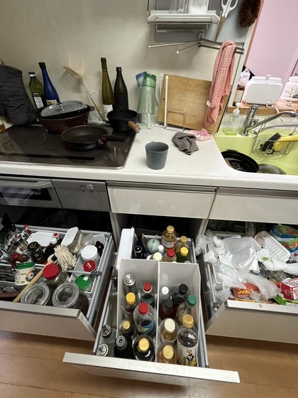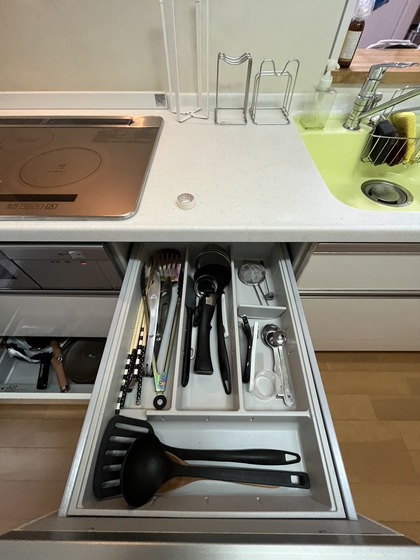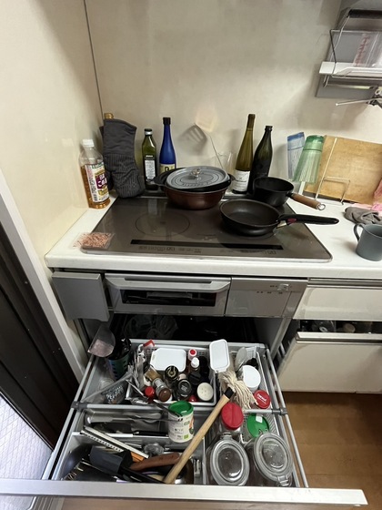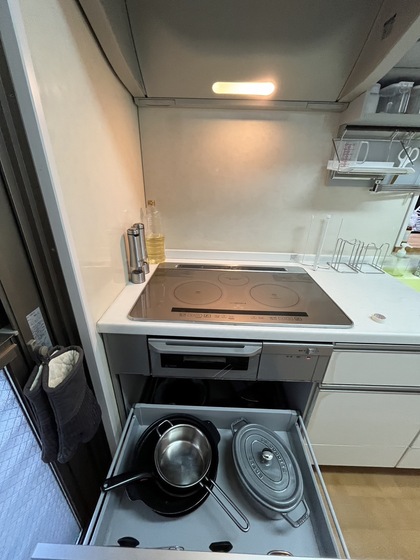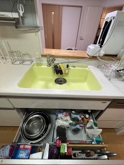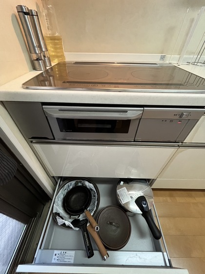 鍋がいつも出しっぱなしになっているので、下の収納をどうにかして仕舞いたいとこです