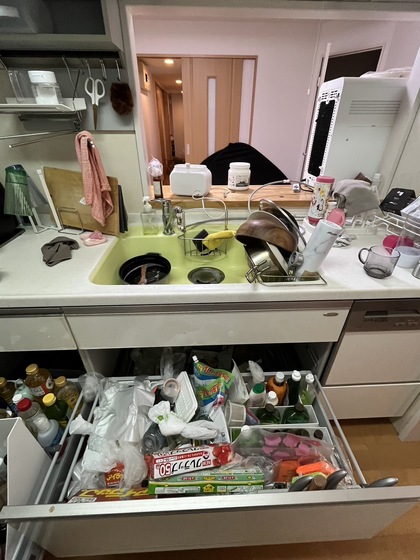 ボウルやざる、包丁、洗剤などを仕舞いましょう