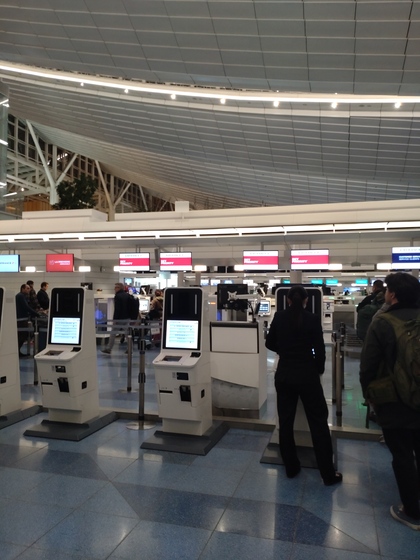 先ずは自動チェックイン その後 有人カウンターにて手続き(乗り継ぎがあるので確認の為)