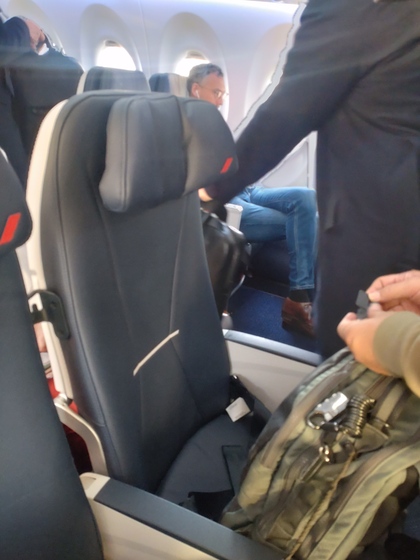 ビジネスクラスは窓際に1席 中央に2席 こちらは行きの旧シートになります